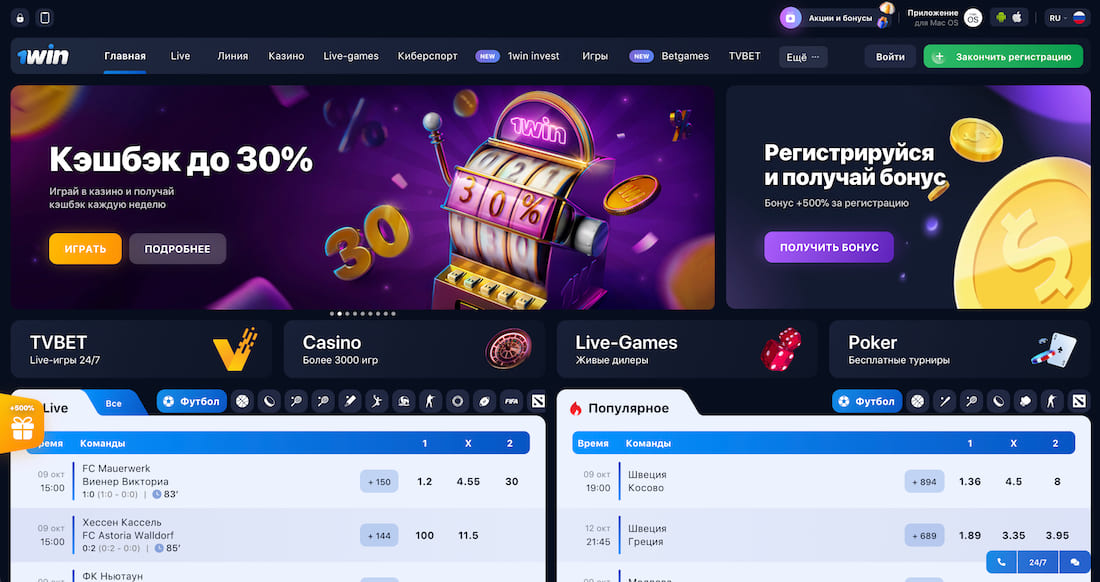 1 win – надежная букмекерская контора, которая принимает ставки на спорт и предлагает топовые бонусы не только в БК, но и в казино.